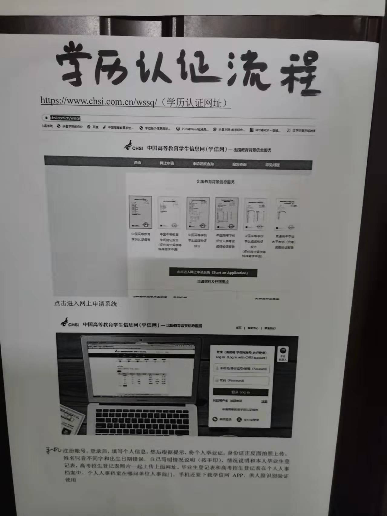 请拍照这个模板,全部手写,拍照或扫描后上传学信网,因姓名错误,必须将个人档案中的高等学校招生考生登记表即高考报名表(含照片页面,此表在个人档案中,档案在哪问用人单位,学校没有此表),高等学校毕业生登记表(含照片页面,此表在个人档案中,档案在哪问用人单位,学校没有此表)拍照上传学信网认证页面,网址为 https∶//w.chsi.com.cn/wssq/根据学信网要求,学历认证涉及隐私,需个人注册信息,个人认证,学籍学位科不负责学历认证过程,但积极为各届毕业生解决学历信息问题。