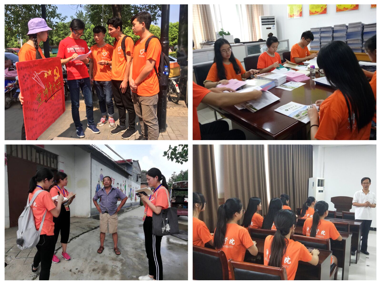 截止目前,我校多支实践团队已圆满完成实践任务,队员们奔赴许昌市建安全袁庄村、禹州市苌庄乡毛栗沟村、鸠山镇张家庄村等多个贫困村镇,走进万像春天、祥瑞小区、恒大绿洲等多个居民社区,常驻鄢陵县人民法院、永新电器股份有限公司等多家企事业单位,深入绿园养老院、阳光儿童救助中心、高铁站、火车站等多个志愿服务基地,开展形式多样、内容丰富的实践活动,队员们共走访贫困户130余户,义务支教儿童300余名,维修家电800余件,开展专题调研20余项,取得了良好的阶段性实践成果。(图片由各实践队提供)
